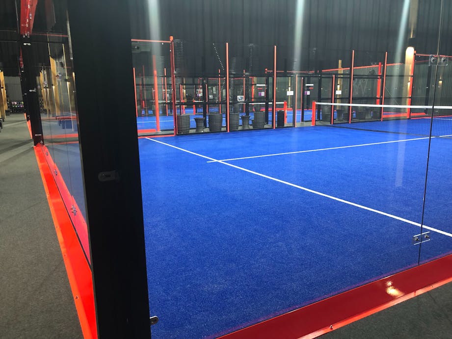 I vår lokal på 1000m² finns det 3 dubbelbanor. Padelhallen är byggd med limträbalkar och väggarna har mörkgrå träpanel ifrån golvet och svarta ljudabsorberande tyger hängande ifrån taket. Detta för att få en dämpande och behaglig miljö.